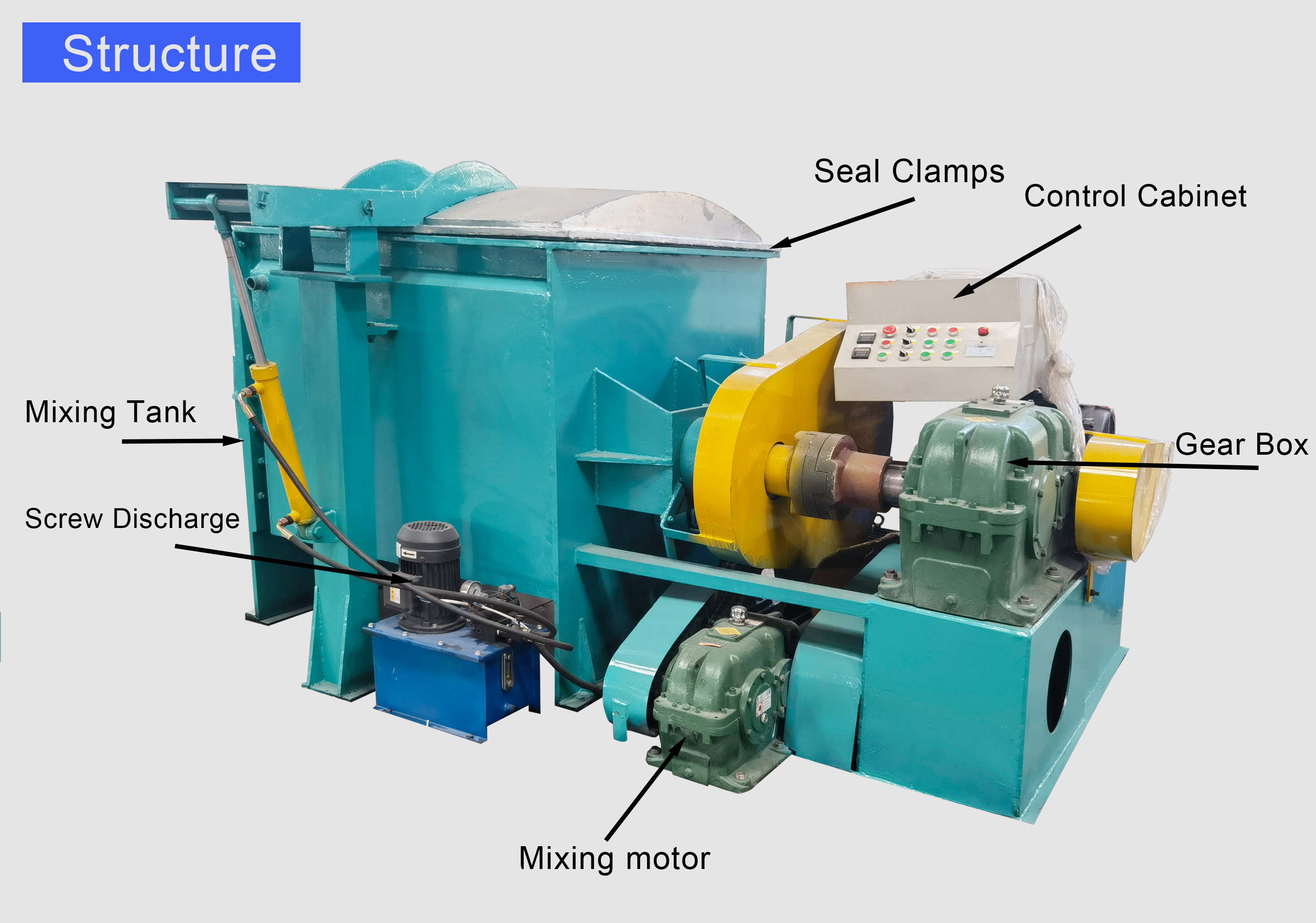 working principle is the two ”Σ” shape blade: One blade with higher speed usually 33 RPM, the other is slower about 25 RPM,using speed difference to generate a strong shearing force, making the mixture quickly be sheared and evenly mixed.