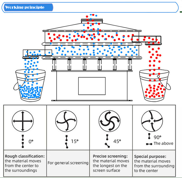 is a kind of high-precision sieving equipment, widely used in food, chemical, metallurgy, mining, building materials and other industries. It is characterized by its screen opening of 0.2-10mm, the feeding capacity of 1-2 tons/hour, the screen angle of 15-30 degrees, and the noise level of less than 75dB. It is made of 304/316L stainless steel or carbon steel material which is abrasion-resistant and corrosion-resistant, making it suitable for long-term use in harsh environments. This vibrating screen sieve and vibrating filter sieve has the advantages of high screening accuracy, good sealing performance, simple structure and convenient maintenance. The screen frame of the screening machine is specially designed, which can be disassembled and replaced to facilitate the cleaning of the screen surface.