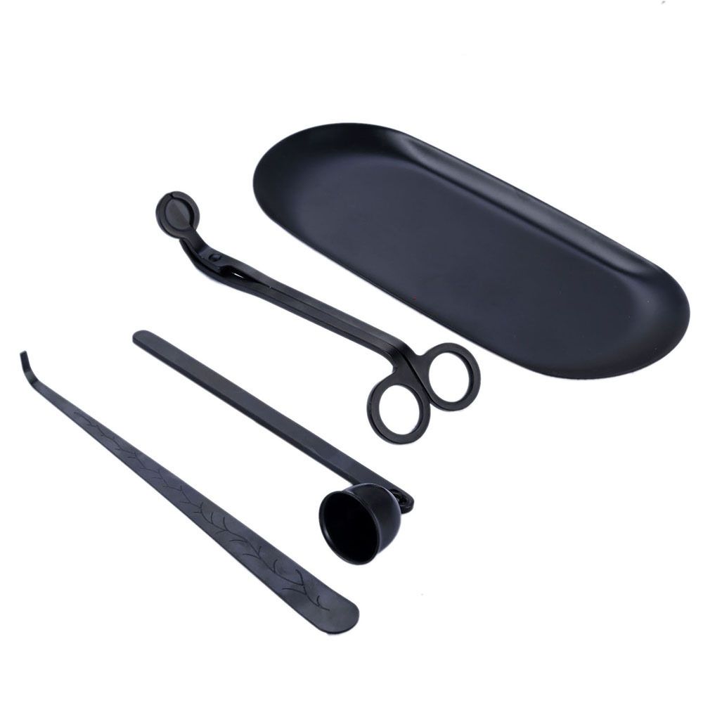 Wholesale Black Stainless Steel Wick Trimmer Scented Candles Cutter Scissors Set cut wicks And Bell For Candles