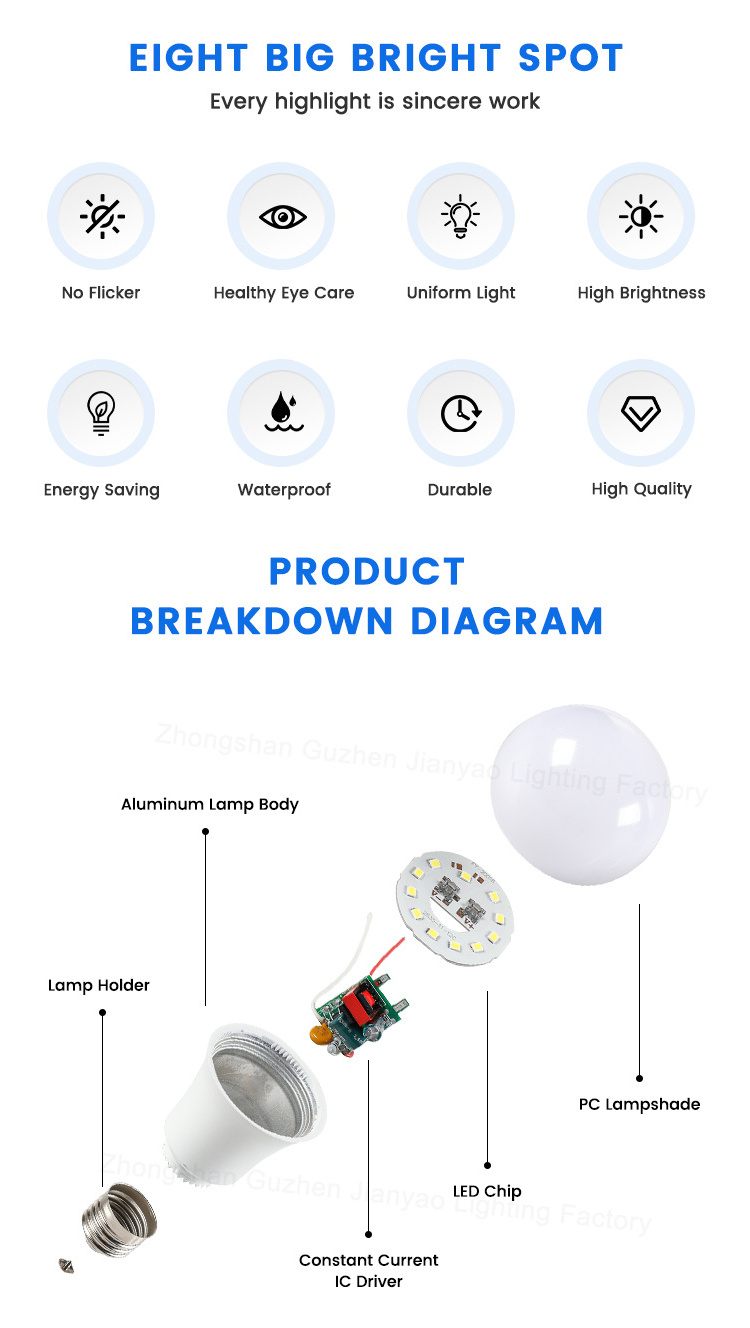 Wholesale E27 3W 5W 7W 9W 12W 15W 18W 25W Watt Energy-Saving Led Bulb Light
