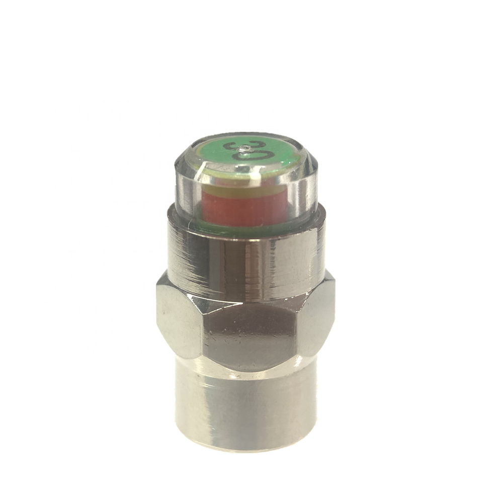 GREEN, YELLOW, RED, visible through upper transparent portion of indicator.