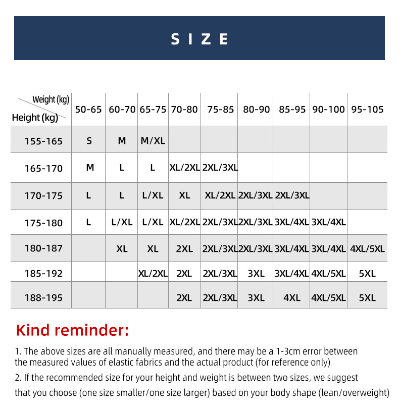 The unit of height is CM, and the unit of weight is KG. Please choose the size based on your height and weight