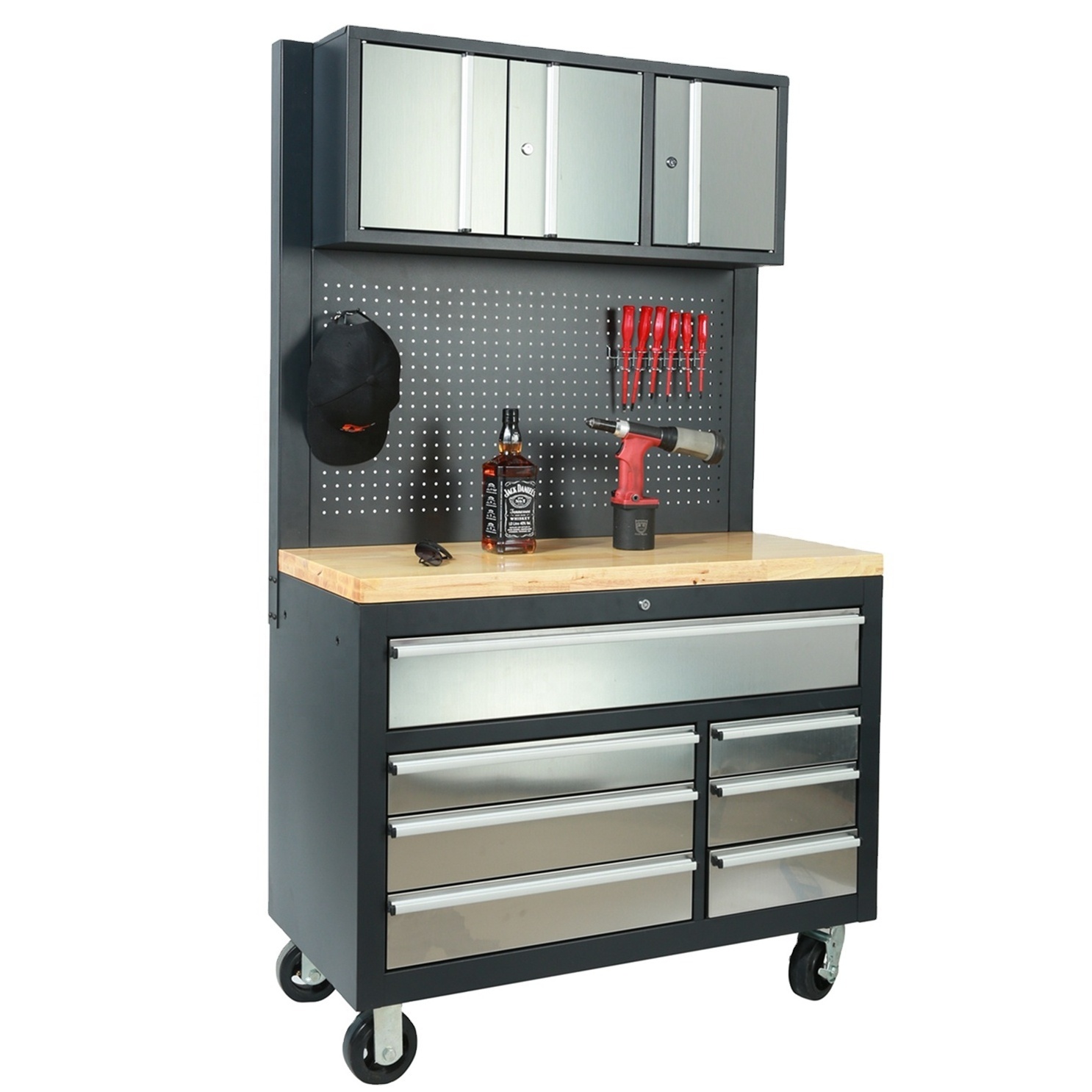 2. Wall cabinet, with lock system, provides more storage room.