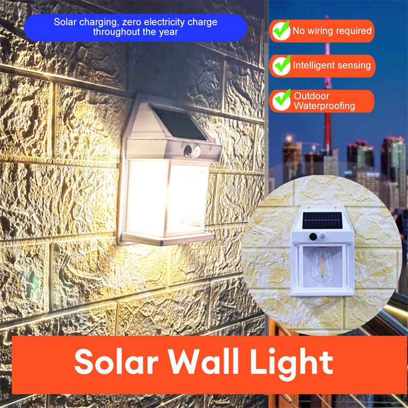 Tungsten Filament Bulb Night Lamp Solar Fence Light Outdoor Solar Wall Light