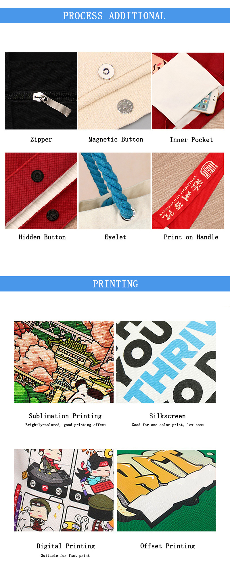 silk screen printing,foil bronzing & heat transfer printing,thermal sublimation printing, digital printing,etc