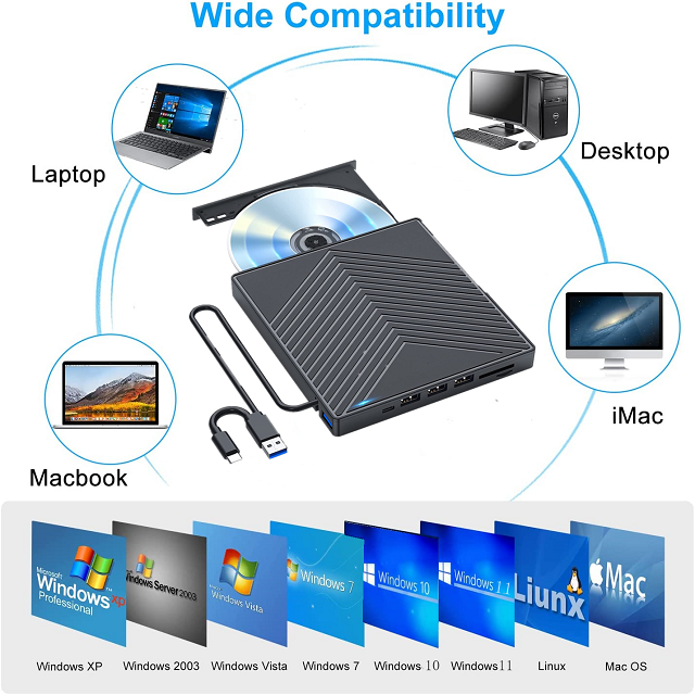 Driver-free, plug and play (except win98 system, win98 system needs to install the driver). Full support for DOS boot and system recovery issues. The movement has strong error correction ability, shockproof, low noise, and can run horizontally or independently. Circuit optimization design, energy saving and power saving, no external power supply required. The machine is embedded with a unique anti-burning control chip, which can effectively prevent the probability of burning the disk during the burning process, and has a super error correction function for reading the disk, allowing you to back up data and enjoy high-fidelity sound quality DVD burning.CD.