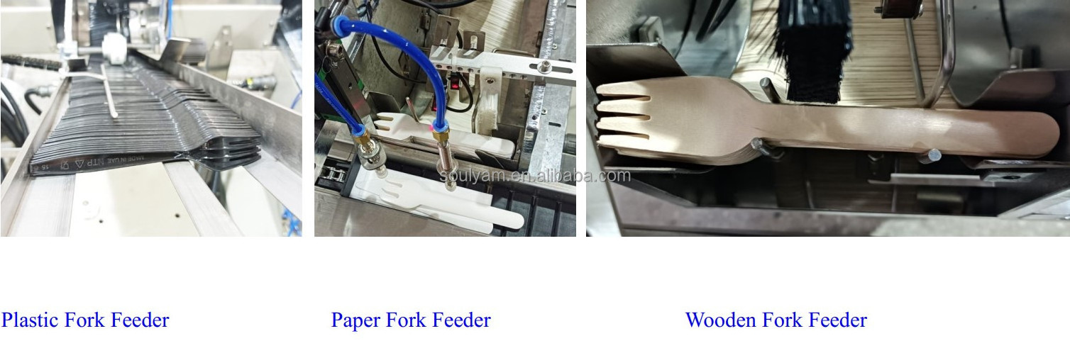 automatic spoon feeder→ automatic fork feeder→ automatic knife feeder →pillow bag forming→products output and so on many features