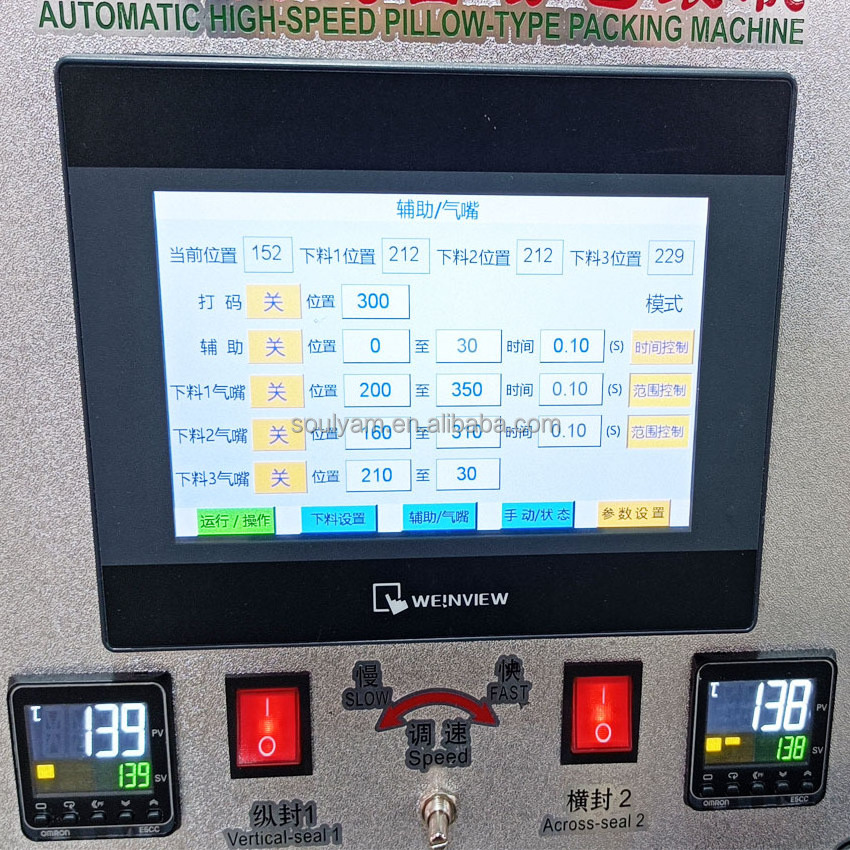 11).Automatic Detect the products, if no product feeding into the film, the machine will stop, no empty bag and no cutting the products.