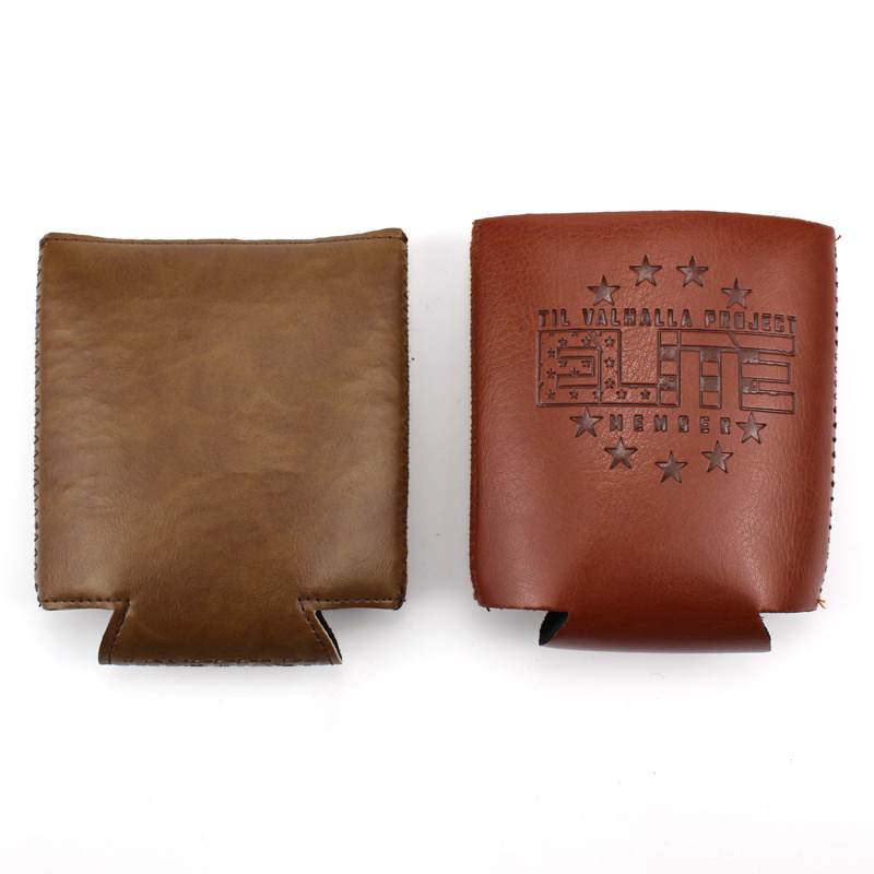 Factory wholesale beer holder custom PU leather can cooler with LOGO