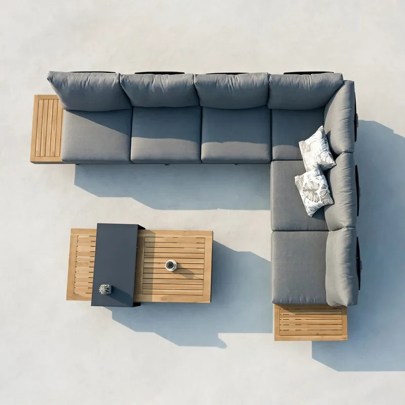 Villa Terrace Outdoor Leisure Acacia Sofa Combination Outdoor Courtyard Waterproof Sunscreen Outdoor Aluminum Sofa Furniture