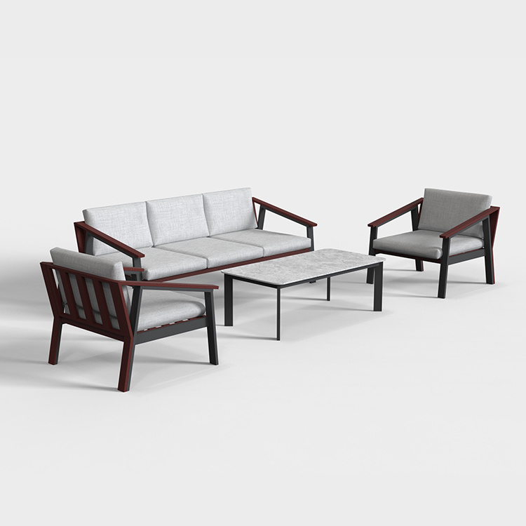 Aluminum frame ,with teak slas,with olefin fabric cushions.
