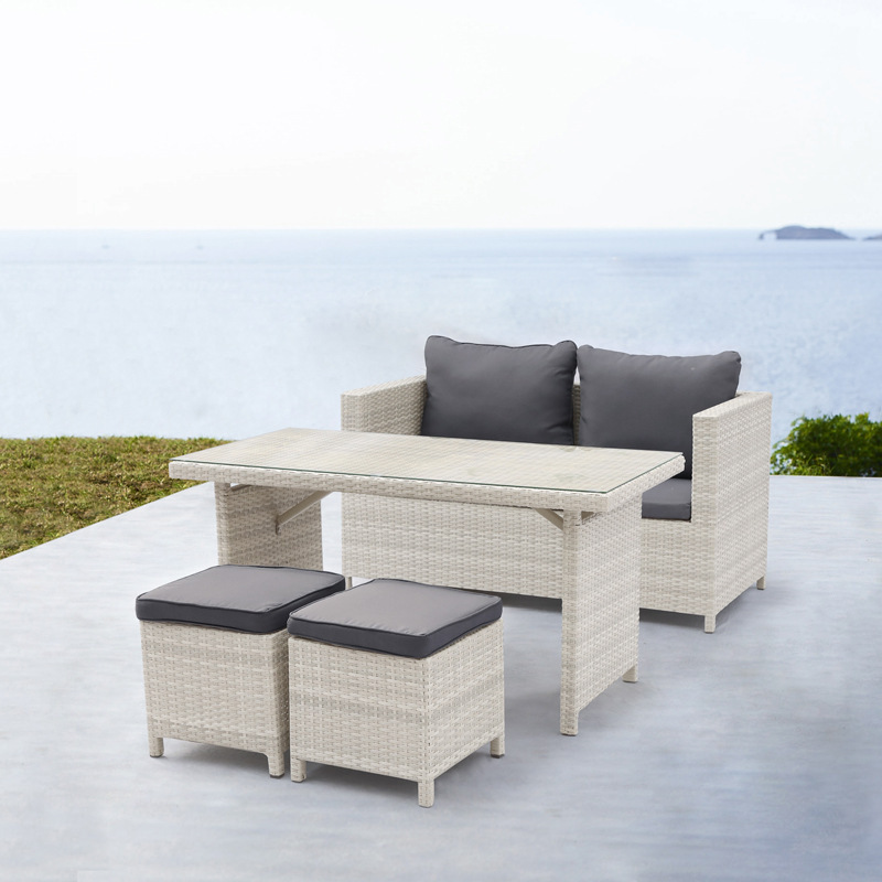 Coffee table: 126*64*65cm, double chair: 34*65*69cm, footstool: 38*38*40cm