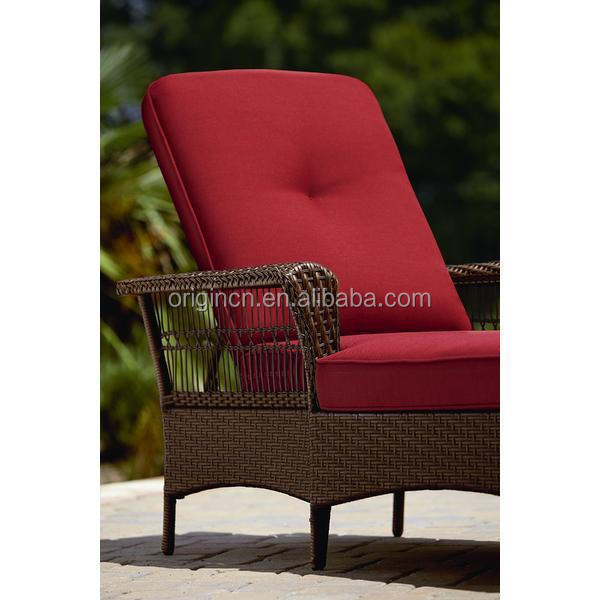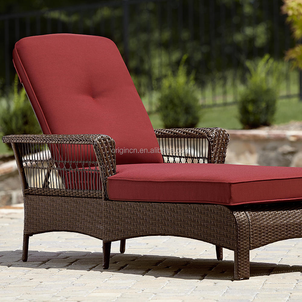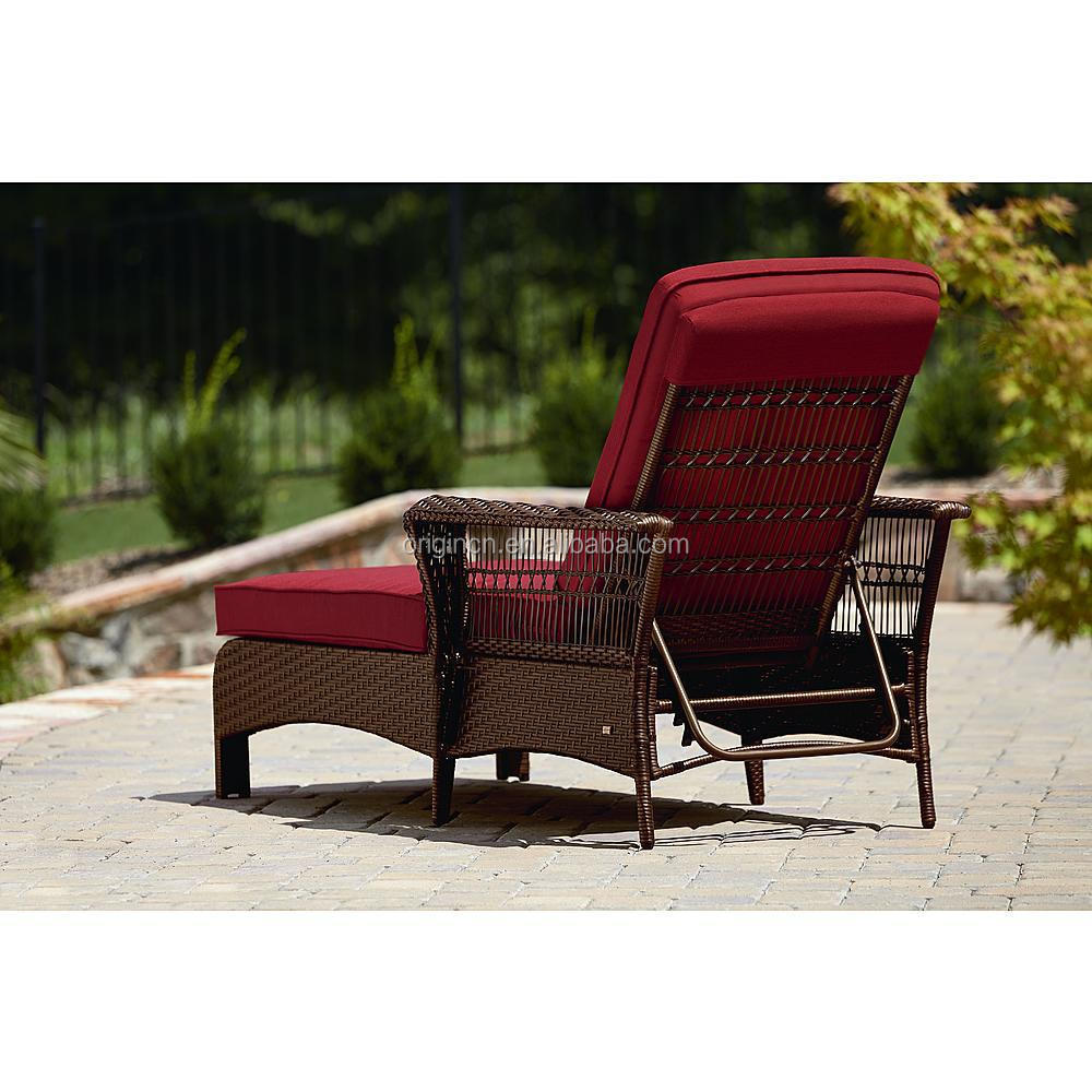 Outdoor living sunbathing furniture 4 position adjustable back reclining rattan bed chaise lounge chair