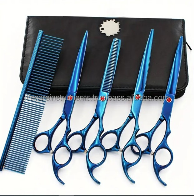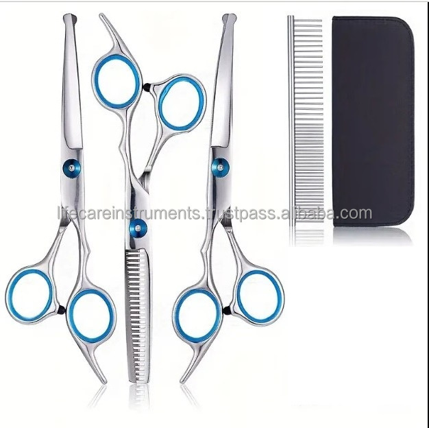 Blue Color 4 Pcs Pet Grooming Scissors