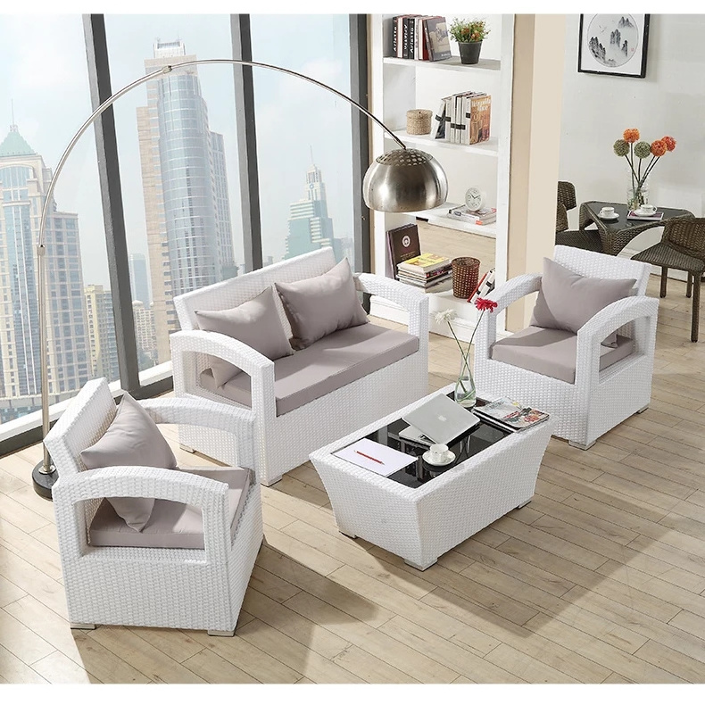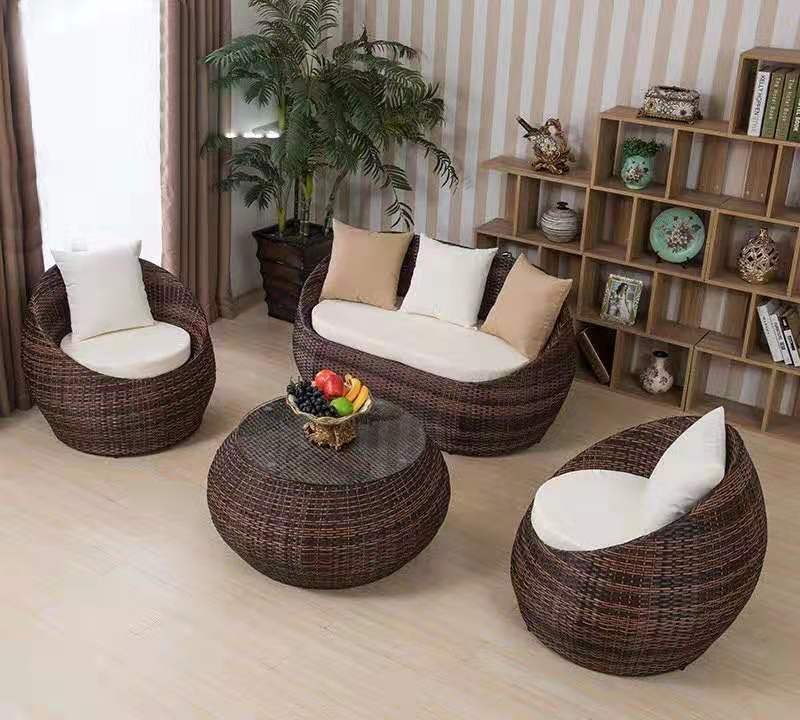 Iron frame/aluminum alloy +PE rattan + glass + sitting bag
