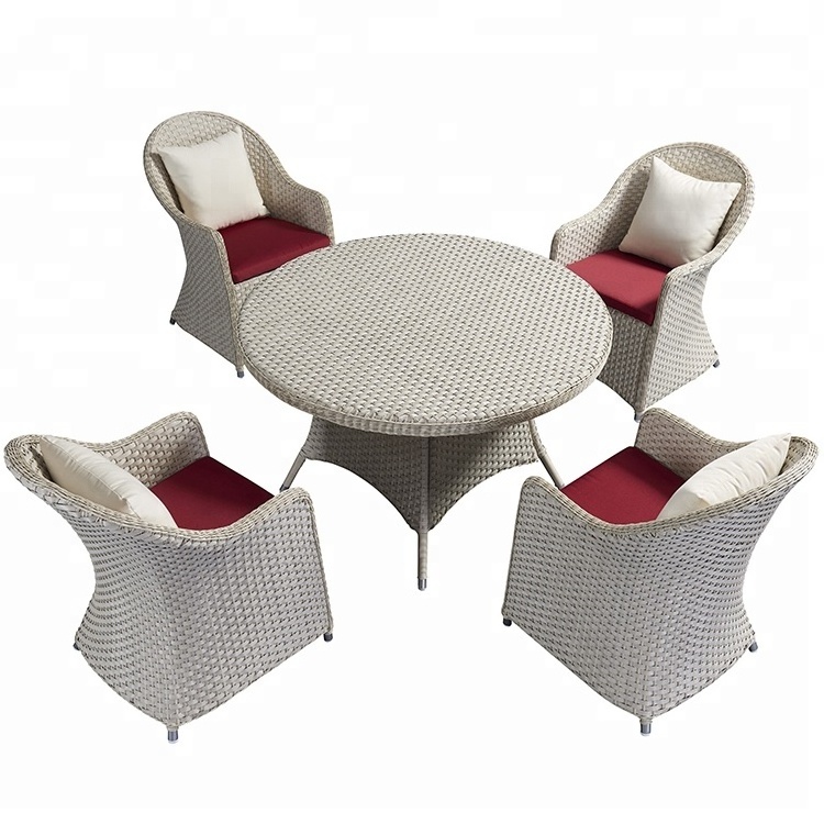 Outdoor Wicker Furniture Garden Tempered Glass Round Rattan Dining Table Chair Set