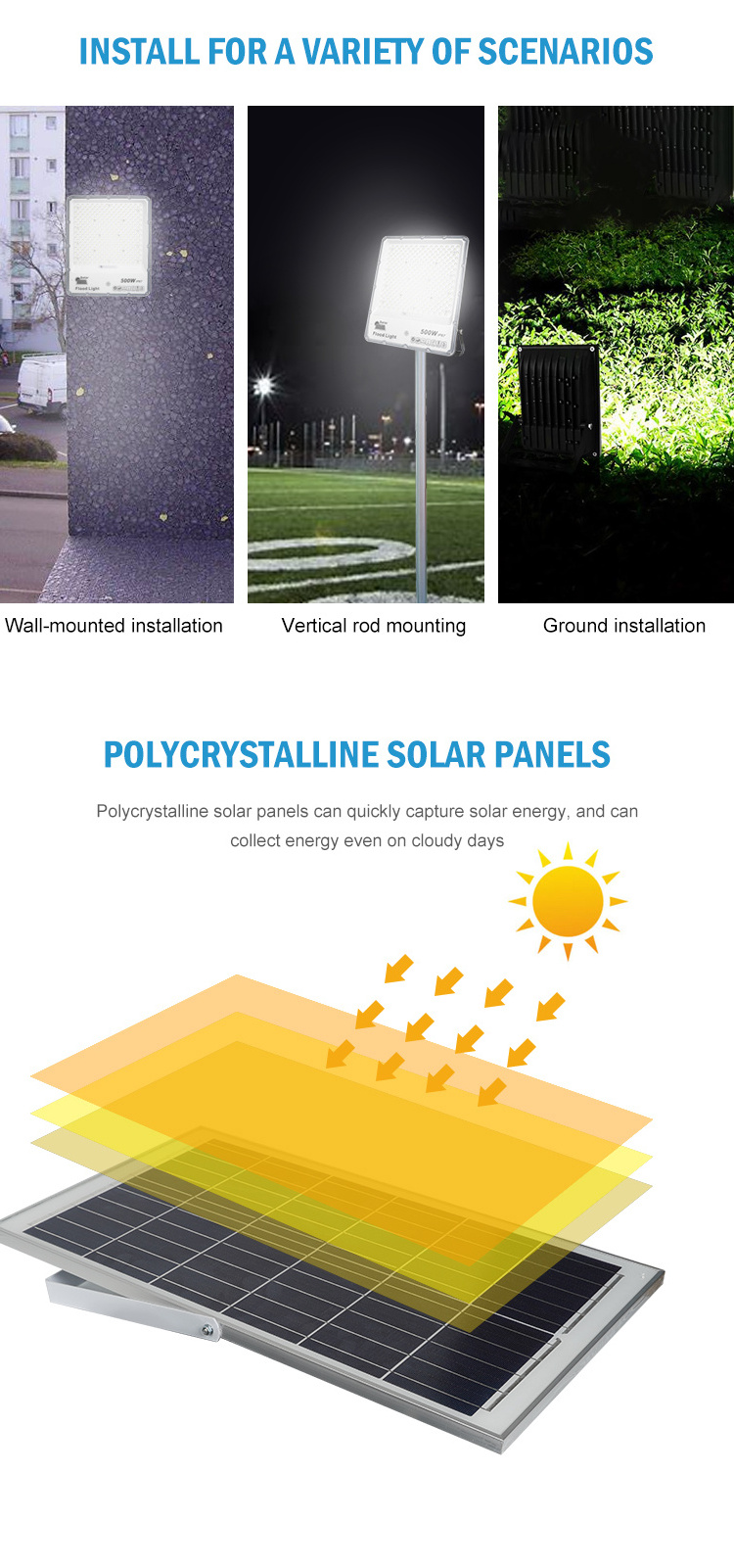 Smd Aluminum 80w 100w 200w 300w 500w 1000w Solar Led Flood Light