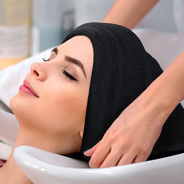Custom Private label Microfiber black hair salon towel