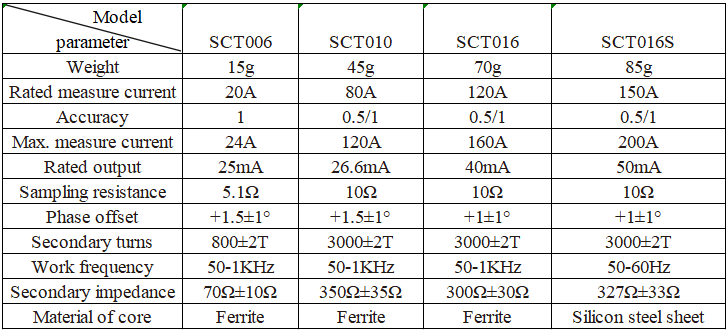 input/output current: 100A/33.3mA, 200A/100mA, 100A/1A, 200A/1A, 200A/5A, 500A/5A, 600A/5A 800A/5A,1000A/5A, 2000A/5A, 3000A/5A,