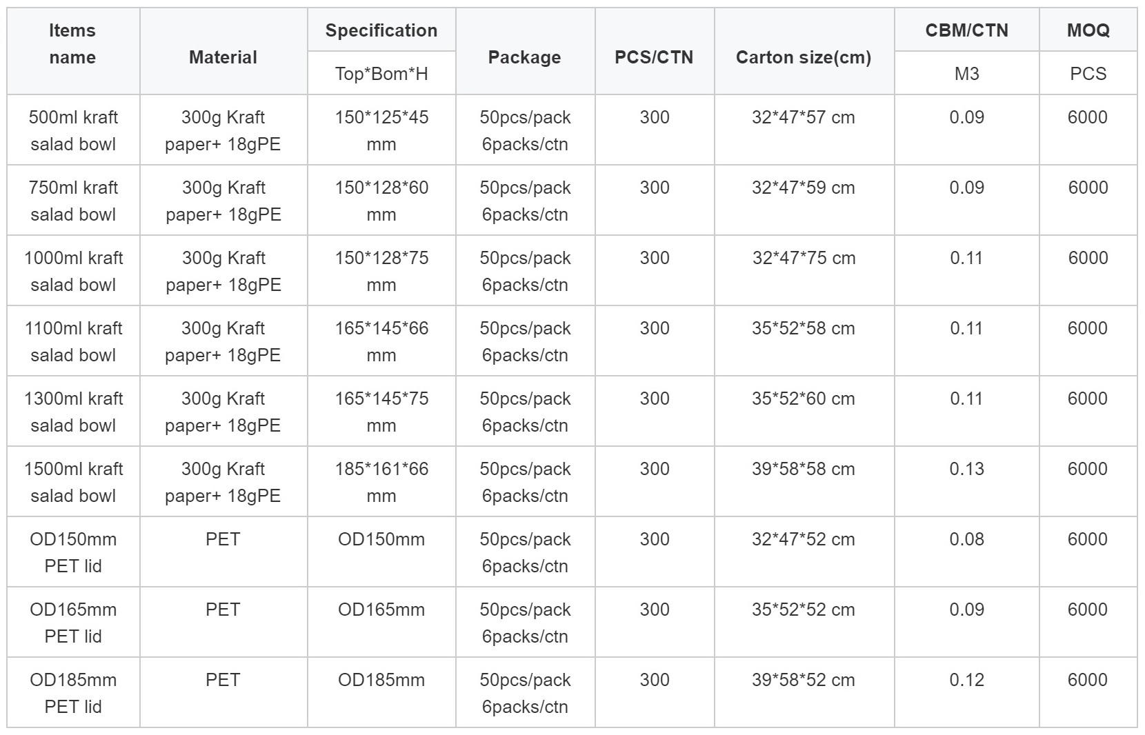 500ml/750ml/1000ml/1100ml/1300ml/1500ml