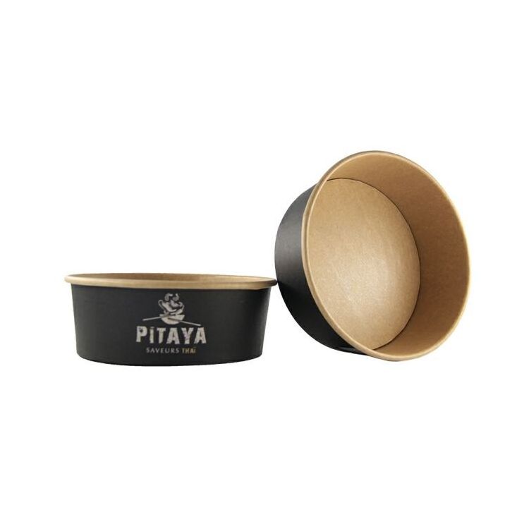 Manufacturer custom logo OEM disposable brown packaging with lid for noodle rice hot food salad soup black kraft paper bowl