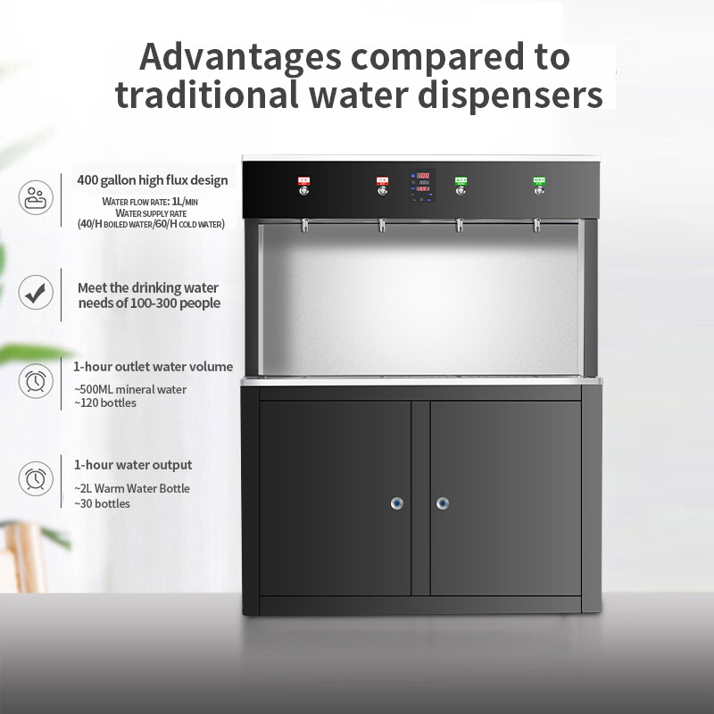 volume:boiling water 35L/H,directly drinking 60L/H filtration: 5umpp+activated carbon +1umpp+400GRO membrane +post activated