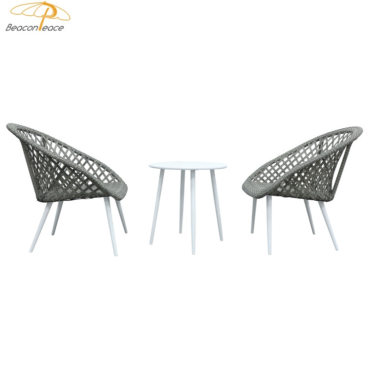 Frame: Alum tube,Powder coating finished. Seat & back:PE flat rattan,weaving same as pic. Seat cushion:T3cm,Polyester |
