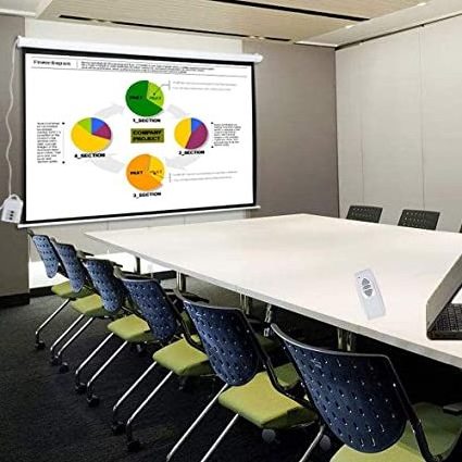 Ideal for conference rooms, classrooms, or home theaters, the economical Premier wall- or ceiling-mounted, electric projection screen offers viewing surface. Motorized screens provide a perfectly flat viewing surface with better image quality. RF welded tabs create a more durable seal that eliminates separation and stickiness. Housed in an attractive white octagonal steel case, the motor-in-roller is insulated to provide a smooth, quiet operation environment.