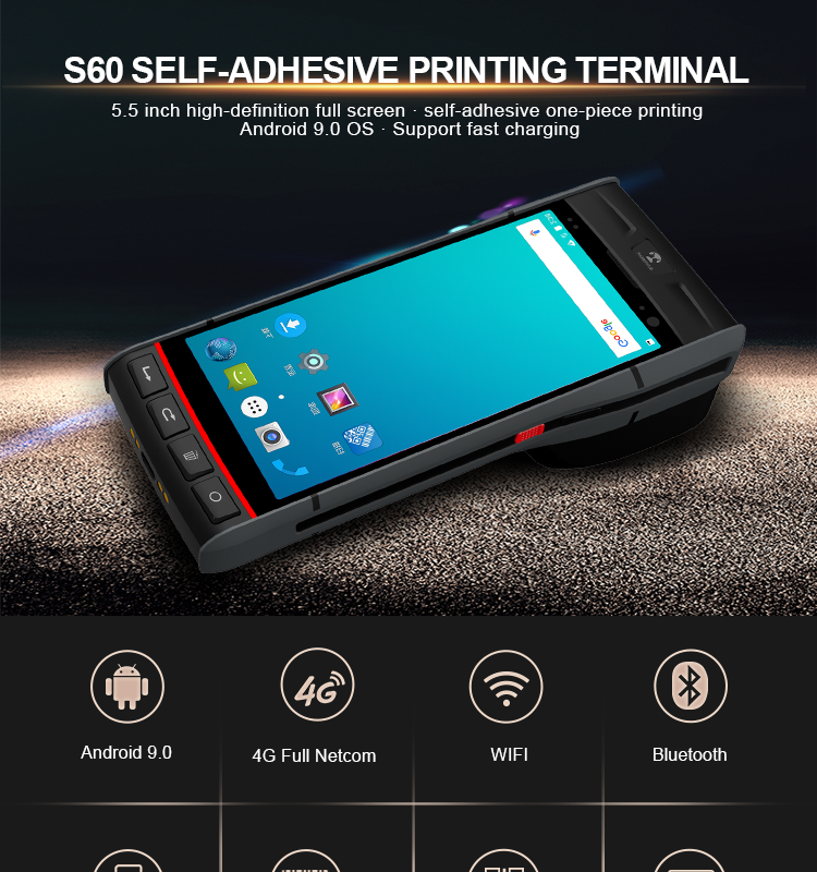 Blovedream S60 Portable Android data collector POS handheld terminal qr code pda with built in thermal & label printer