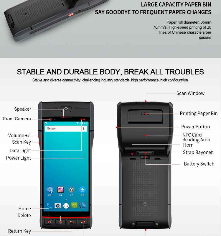 Fully support 1D and 2D barcode scanning,NFC(optional).