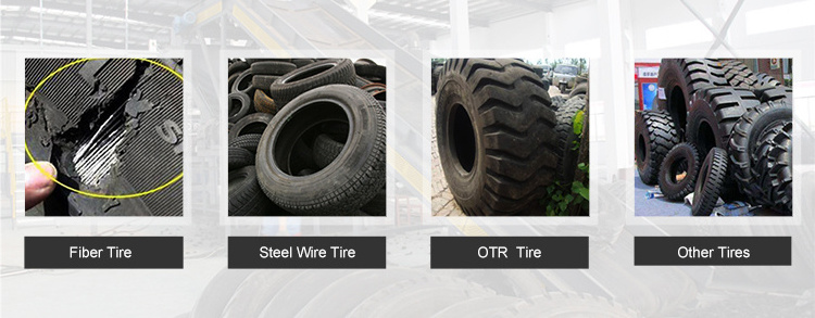 Tire cutting system: waste tires are crushed into 3-8cm rubber blocks by semi auto tire cutting system or tire shredder;
