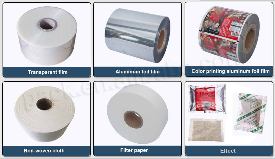 This series of granular packing machine is suitable for appropriate material: this machine can use filter paper, non-woven cloth, composite thin film, aluminum plating film, color printing aluminum foil film etc.