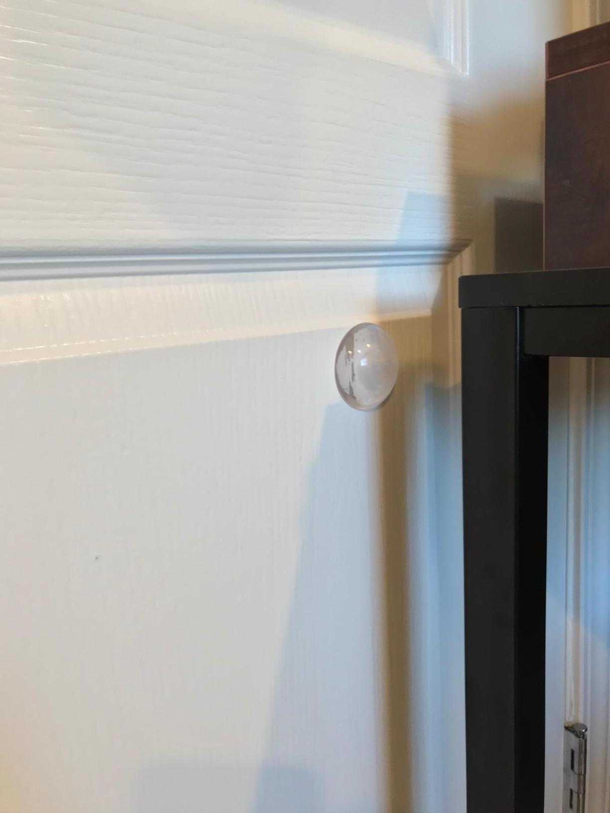 - The transparent gel is shock absorbent and effectively silences the impact of your door handle hitting your wall.
