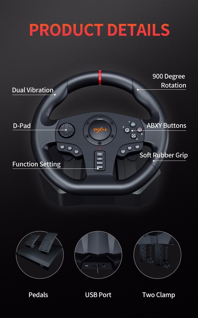 PXN-V900 900 and 270 Degree Audio Racing Game Controller