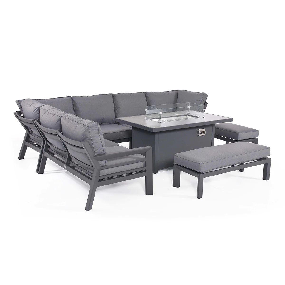 Fimous Aluminum Garden Corner Sofa fire pit Table Sets Dark Grey 9 Seat firepit table