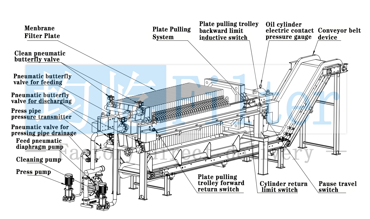 Membrane Filter Press(Diaphragm filter press), also known as diaphragm filter press,
