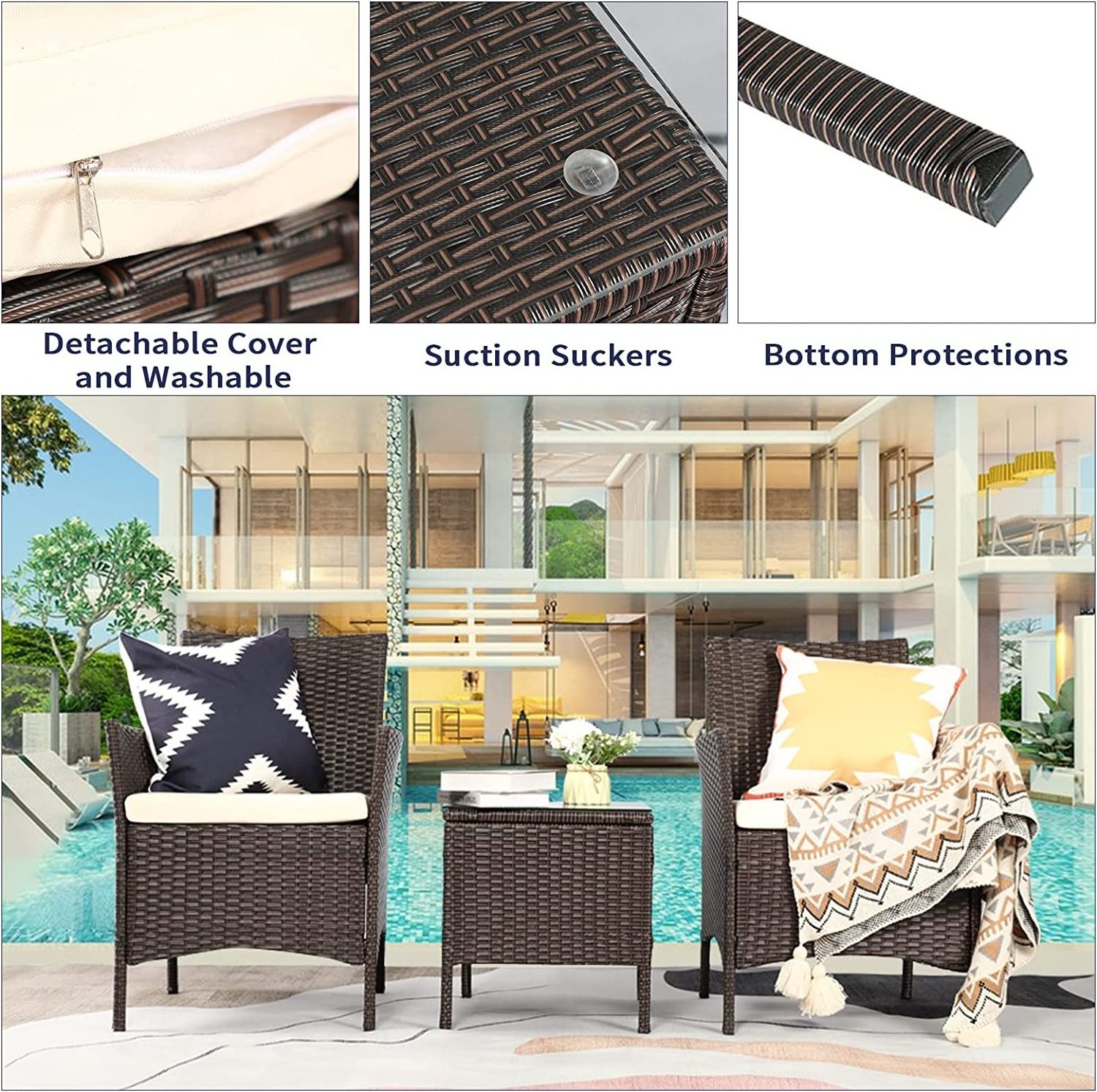 Weather resistant- can be put both indoor and outdoor;Chlorine resistant, salt resistant, suitable for swimming pool;
