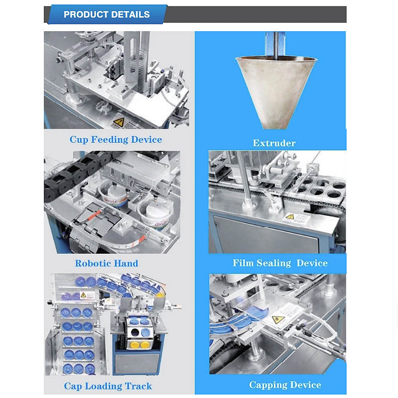 * Extruding mud, feeding, cutting, putting cups, sealing film(or capping) all in onemachine.