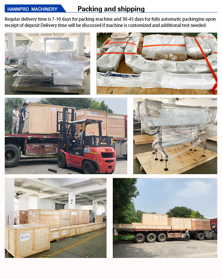 A2: Regular delivery time is 7-10 days for packing machine and 30-45 days for fully automatic packing line upon receipt of deposit.Delivery time will be discussed if machine is customized and additional test needed.