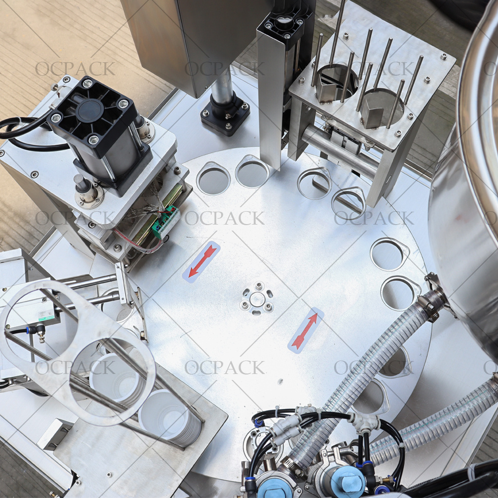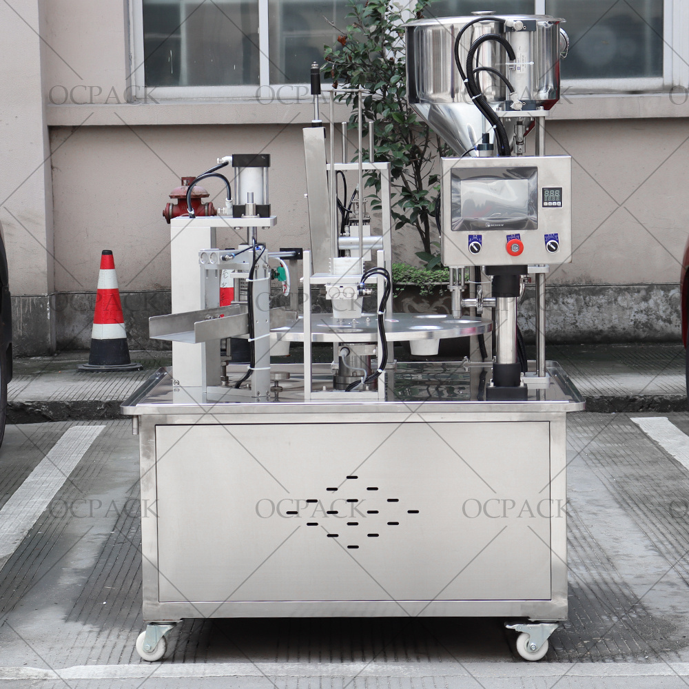 reliability and accuracy. This cup filling sealing machine is equipped with PLC and touchscreen HMI, gives flexiblity to configure properly for your application. All control functions are adjustable via the menu-driven operator interface. Precision made and built to last, our cup filling and sealing machine combines innvoative features, customized for a perfect fit every time.
