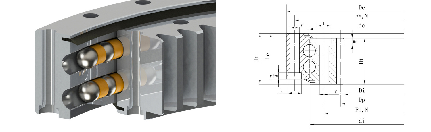 Flange turntable bearings are easy to install, and they are widely used in food machinery, filling machinery, environmental protection machinery, trailer turntables, etc.The single-row ball slewing ring is composed of outer ring, inner ring, ball and