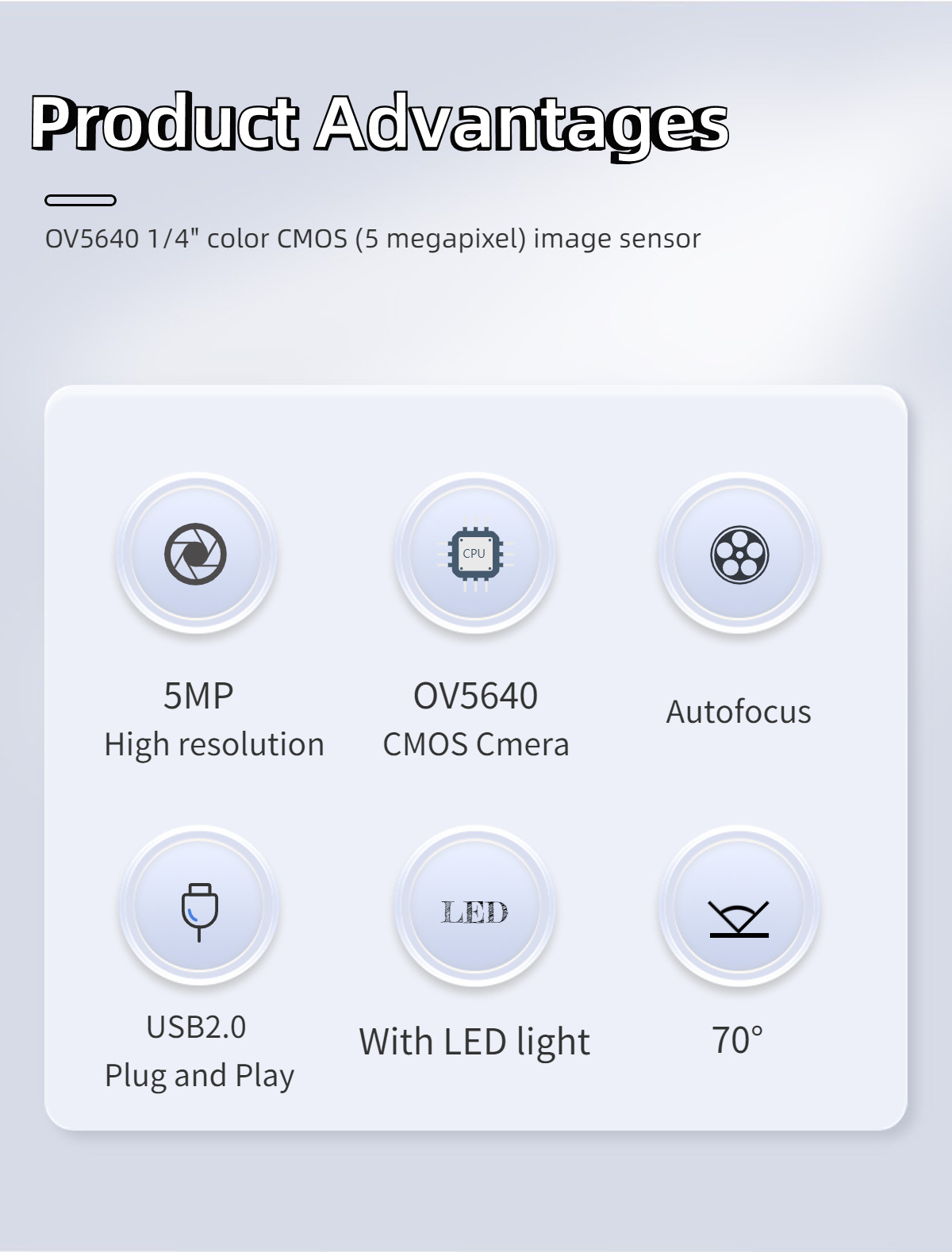 3)With 1/4" OV5640 Sensor