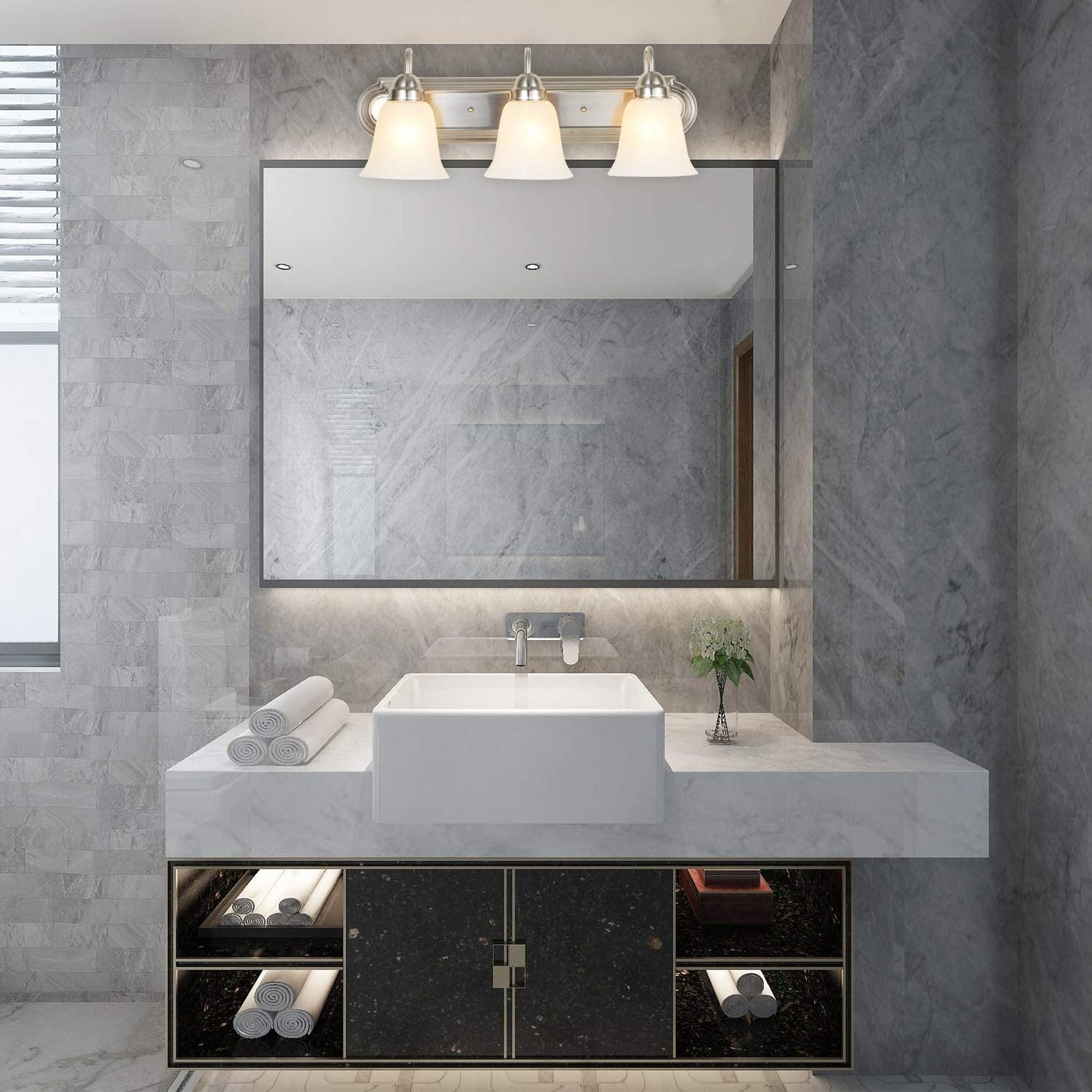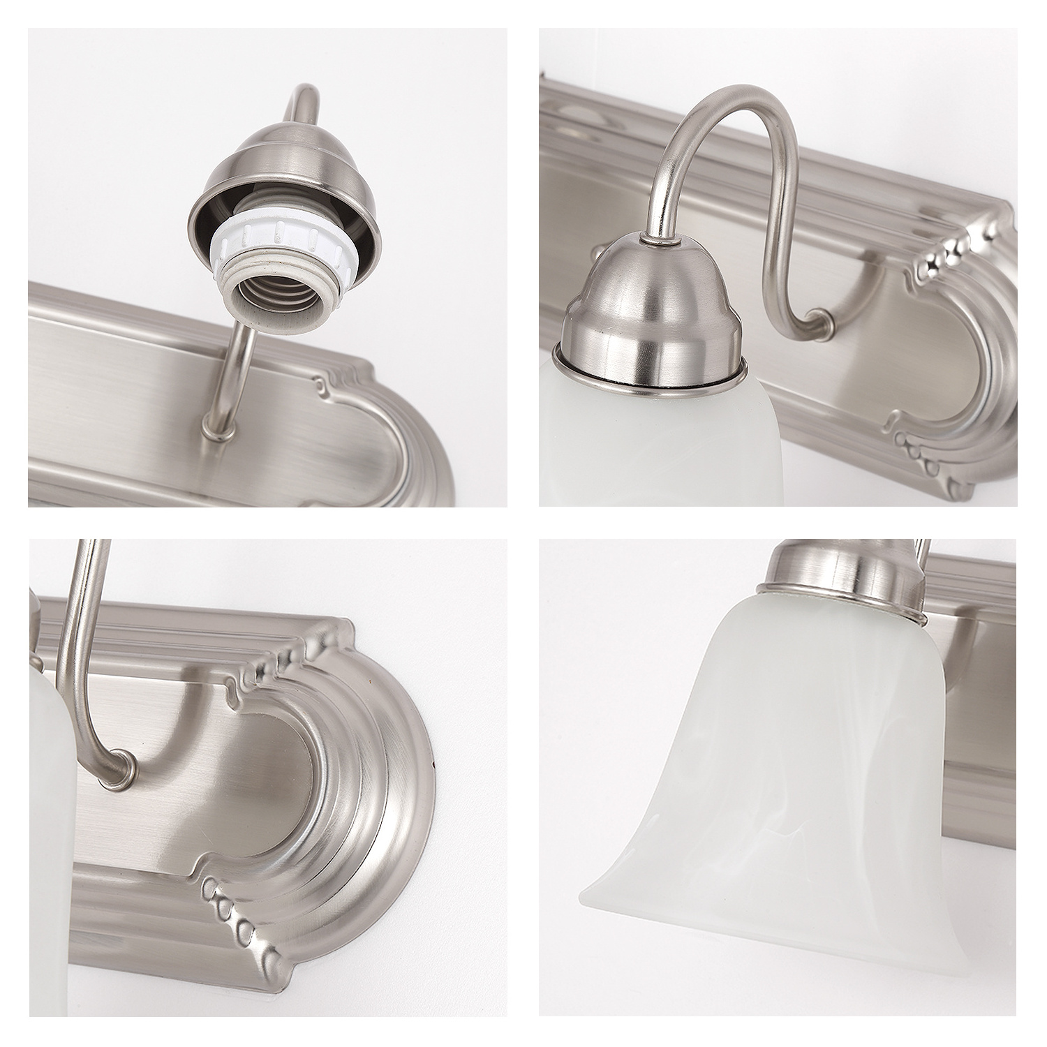 This vanity light is made of high-quality metal and frosted alabaster glass, guaranteeing lifetime durability. The product meets strict high-quality requirements to be safe and reliable for many years to come. The wall sconce is ETL listed for