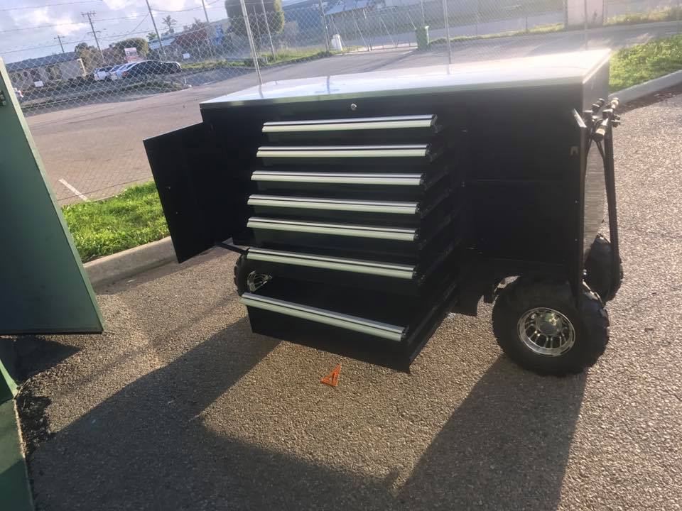 Mobile Tool Box Trolleys, end with two large compartments, one shelf in each to help organize the space