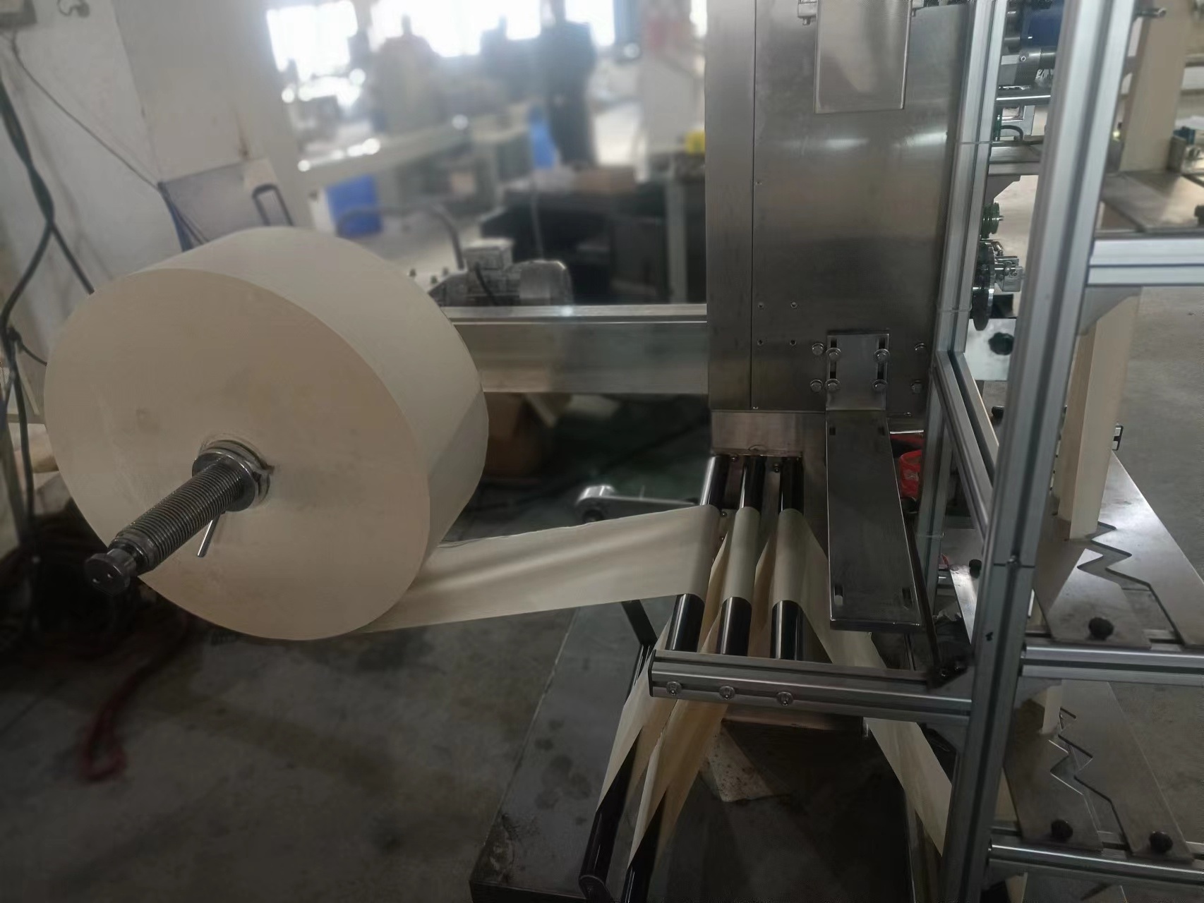 Raw paper roll can be put on this stand and paper unwinding by transmission belt
