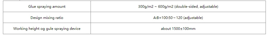 The mineral wool glue spraying system and the upper and lower glue spraying systems of the edge-sealing PU system use a three-component glue spraying device, which is mixed evenly within the adjustment range of the required pouring amount and mixing ratio.