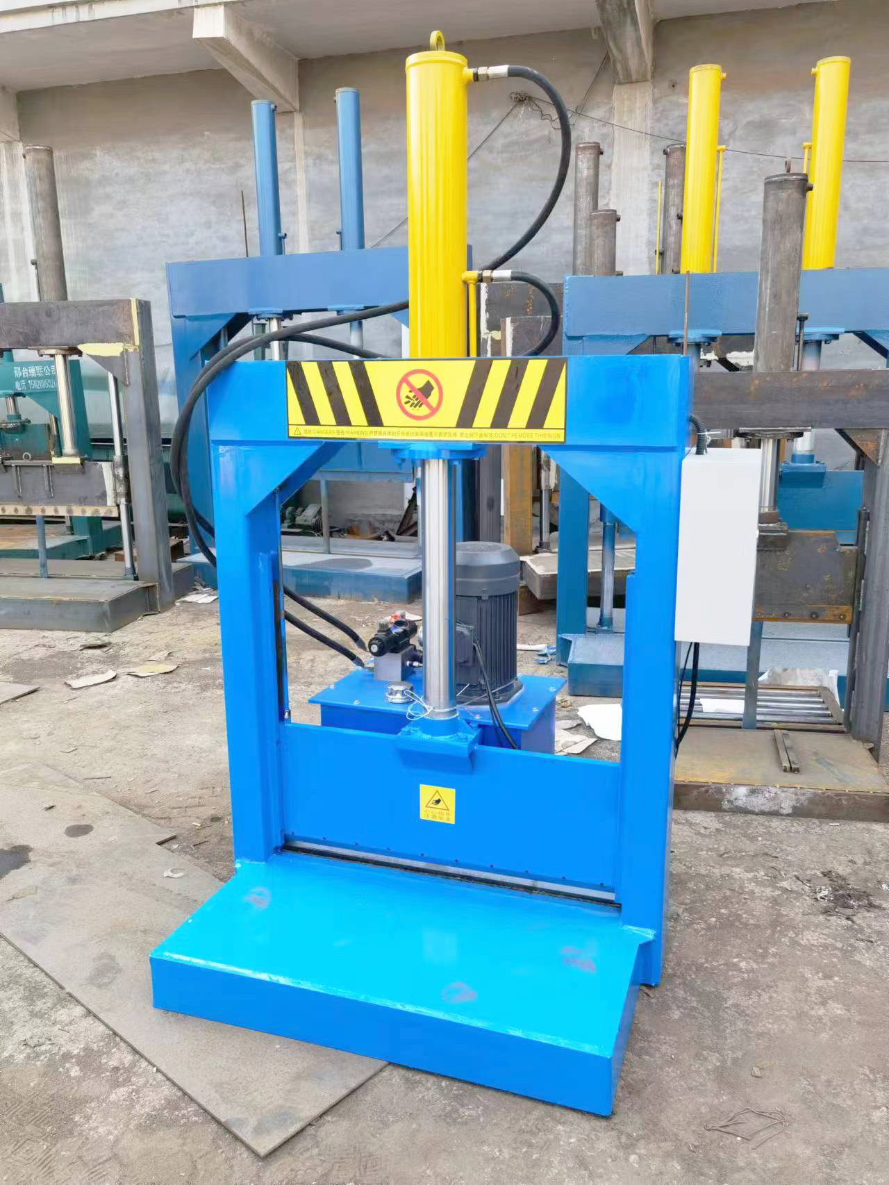 The vertical hydraulic cutting machine is suitable for cutting non-metallic materials such as large soft plastic products, PE, PP films, large pipes, plates, cardboards, etc., so as to facilitate the secondary processing and utilization of items. This series of products are all welded with steel plates, with solid structure and reasonable design, small footprint, fuel tank, controller and fuselage are integrated, easy to operate, easy to maintain and maintain. The product cuts completely, and has the characteristics of fast speed and high efficiency. The working pressure has various specifications such as 40T, 60T, 80T, 100T, etc., and can be customized according to user requirements.