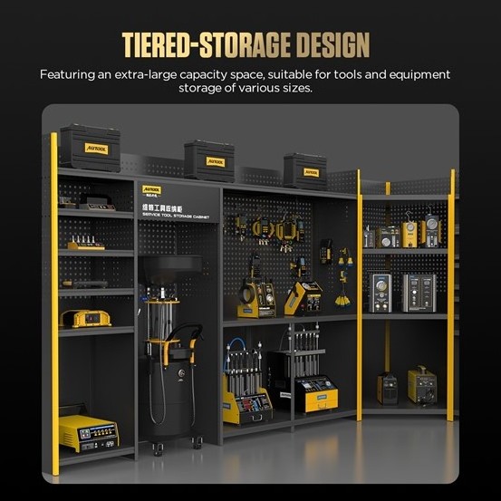 AUTOOL has introduced a new series of maintenance tool storage cabinets tailored for the storage and management of various automotive repair tools. The series includes single cabinets, double-set cabinets, and corner cabinets, allowing users to customize their setup based on practical workspace requirements. Constructed from high-quality cold-rolled carbon steel, these cabinets boast a load-bearing capacity of approximately 220 pounds without deformation. Noteworthy features include hooks and pegboards for the organized storage of instruments and diagnostic tools. The cabinets' sleek design and practicality make them suitable for use in factory workshops, repair facilities, or by individuals.