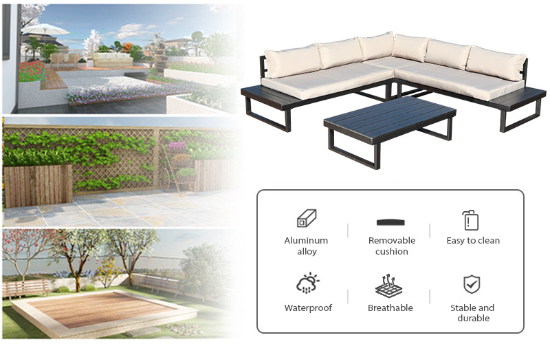 Popular Style Worthwhile Garden Sofa Set Outdoor Aluminum Antirust Water-Resistant 5 Seats Patio Sofa Garden Furniture