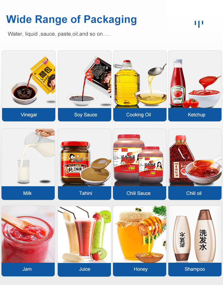 garlic paste,chili oil,mayonnaise sauce,water,yogurt,milk,juice,shampoo,ice pop,mustard oil,cooking oil, olive oil etc.